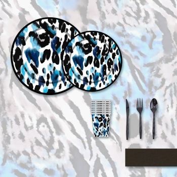 Populaire Blauwe Luipaardprint Feestbestekset Groothandel Papieren Bord Papieren Beker Wegwerp Bestek Rietjes Grensoverschrijdende Party Opp