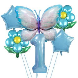Новый трансграничный синий порошок бабочка алюминиевая пленка 40-дюймовый цифровой костюм воздушный шар для вечеринки подсолнечника и цветочных украшений